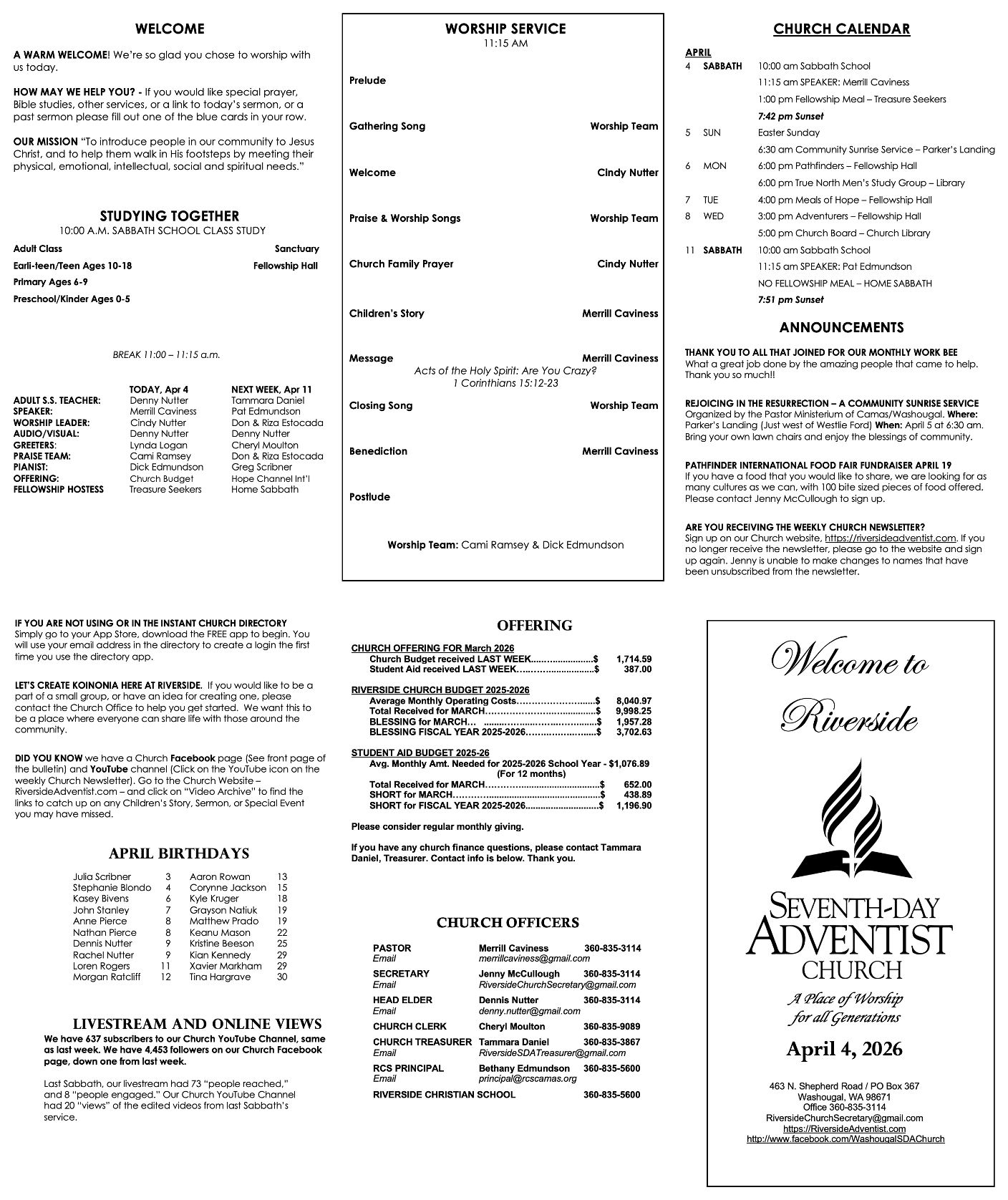 Riverside Church Bulletin 4/4/26