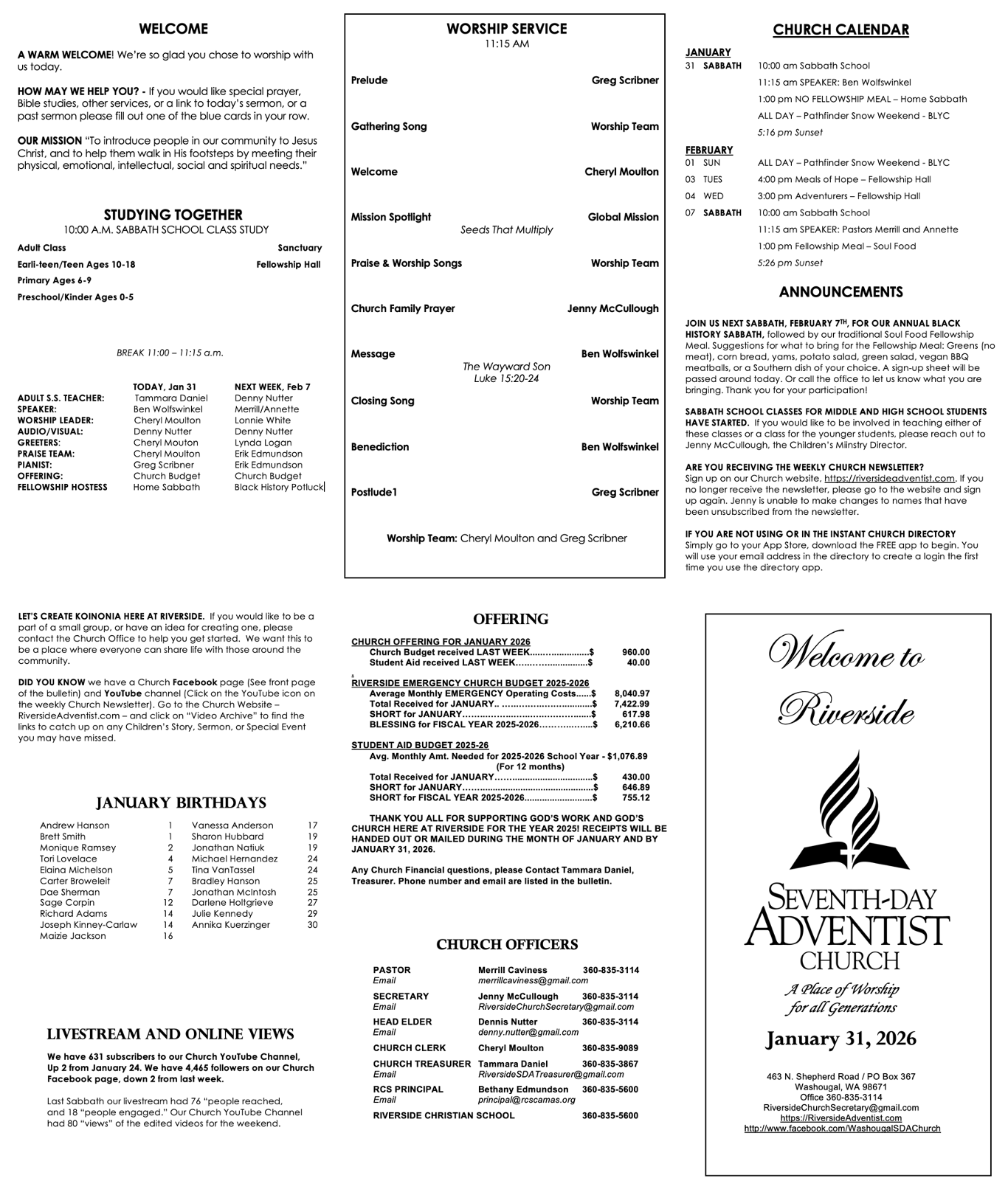 Riverside Church Bulletin 01/31/26